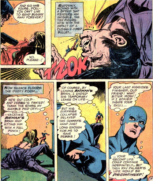 Ray Palmer gets in on a little action as well, as Batman finally falls.