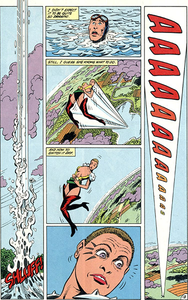 Relief, both visual and literal, as Hawkman steps in with his deus ex machina.