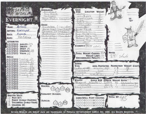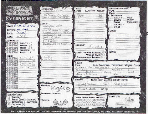 Evernight is by Savage Worlds designer Shane Lacy Hensley, with cover by Zeke Sparkes and interior art by Cheyenne Wright, with cartography by Aaron Acevedo. Some of the professions unique to Evernight: