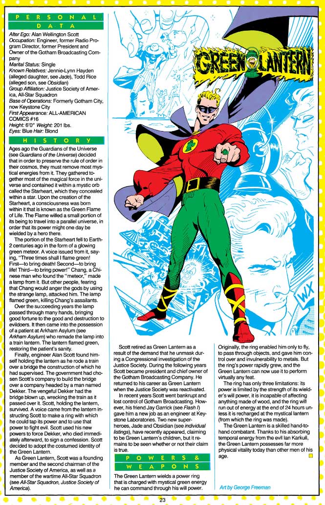 Golden Age Green Lantern (Alan Scott) by George Freeman - Who's Who The Definitive Directory of the DC Universe